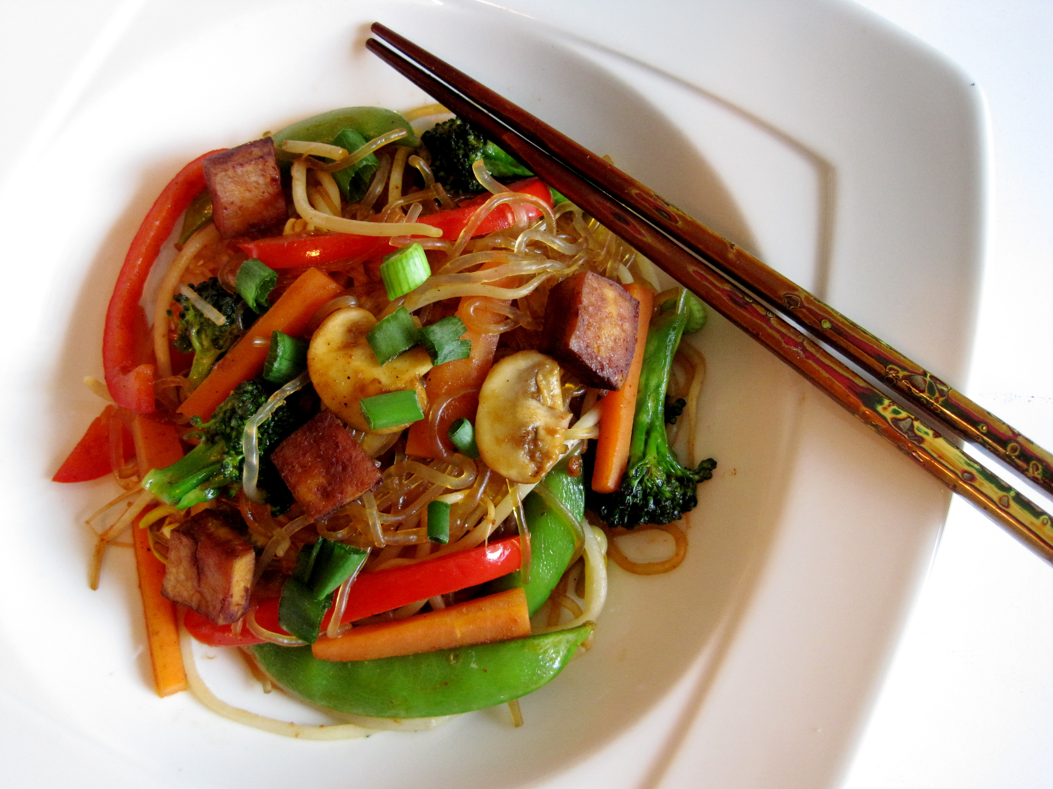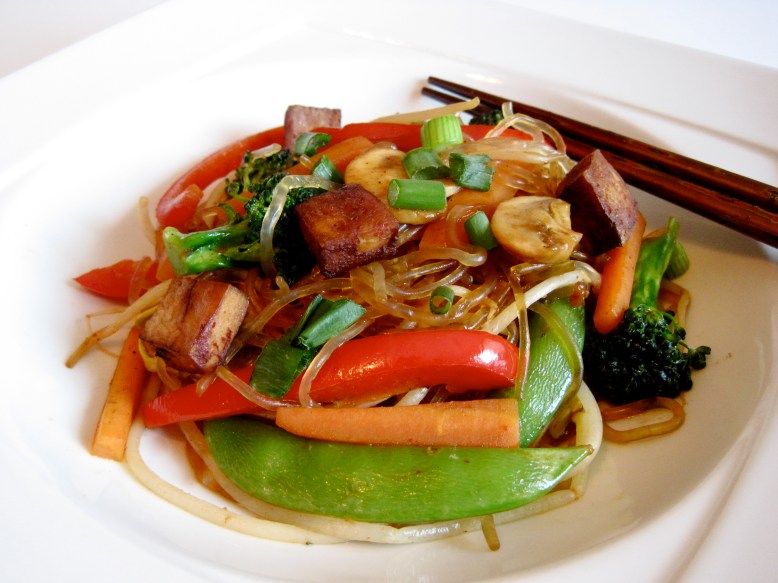 Kelp Noodle Stirfry with Tofu, Veggies, and Tamarind Sauce