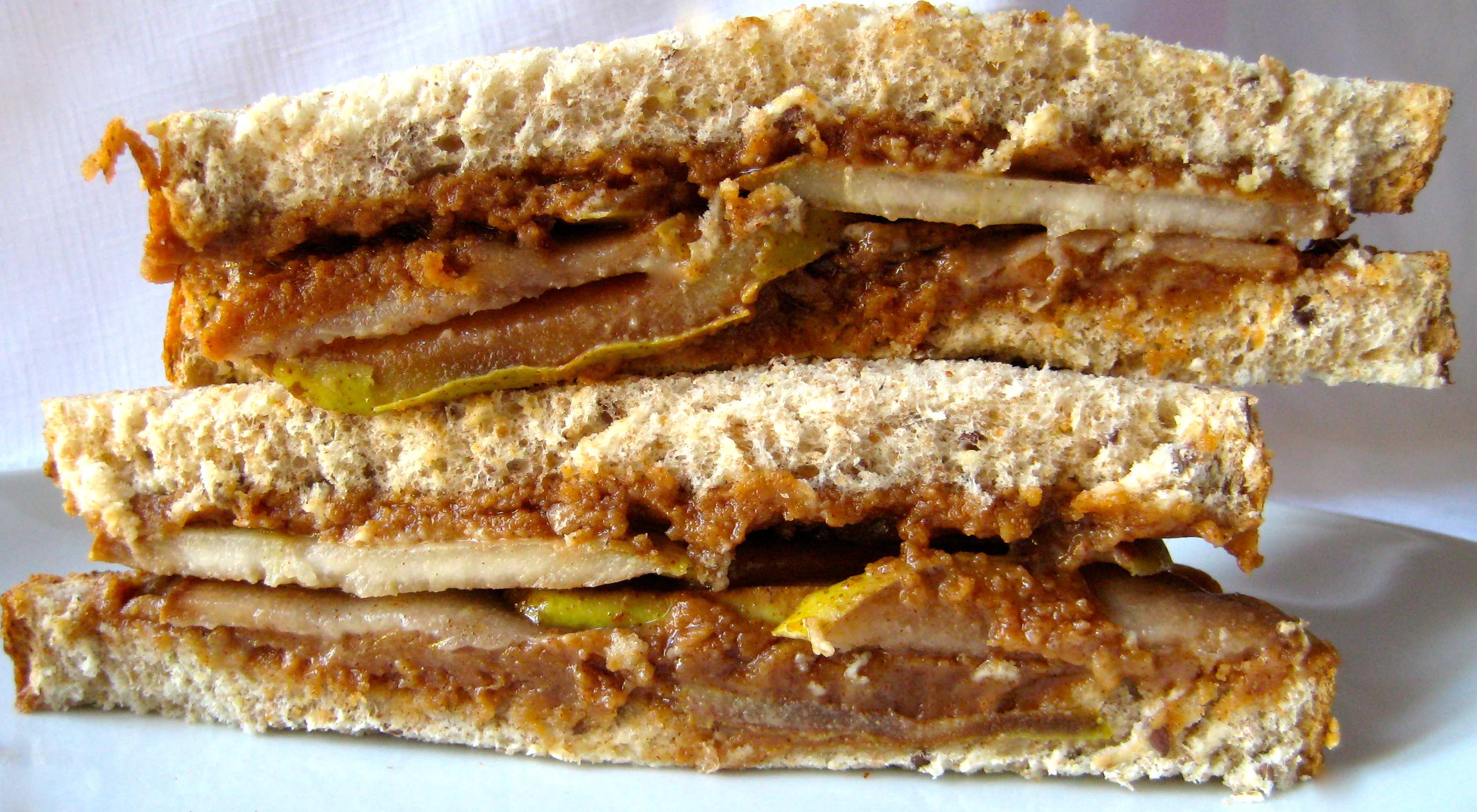 Maple Cinnamon Pear and Almond Butter Sandwich